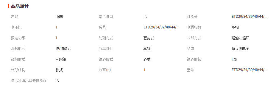 ETD29/34/39/40/44/49/54/59高频变压器 LED开关电源驱动 逆变器 1000PCS