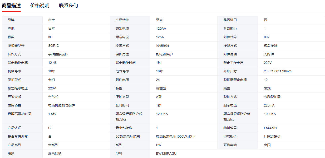 日本原装富士FUJI空气开关塑壳断路器BW125RAGU 3P 100A 1只