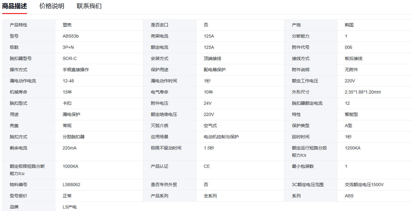 原装韩国(LG) LS产电MEC塑壳断路器 ABS53b 3P 40A进口品牌 1只