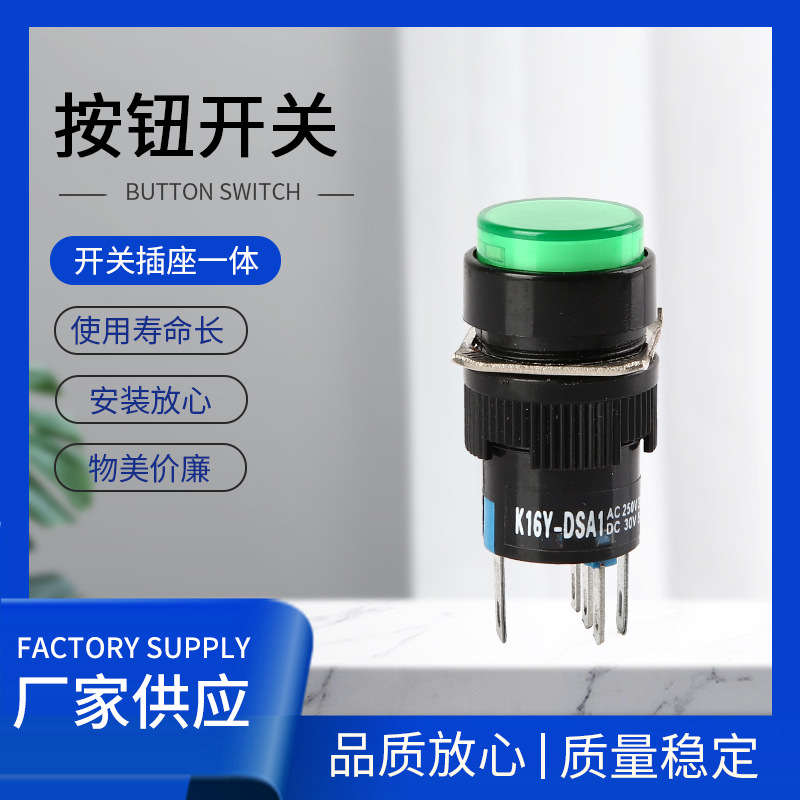 K16Y按钮开关带灯自复位自锁正方形长方形圆形启动电源12 24 220V 500个