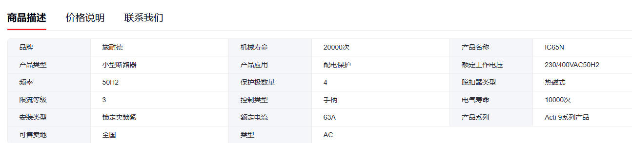 施耐德Acti 9系列微型断路器 IC65N 4P C6A-63A 空气开关 99个