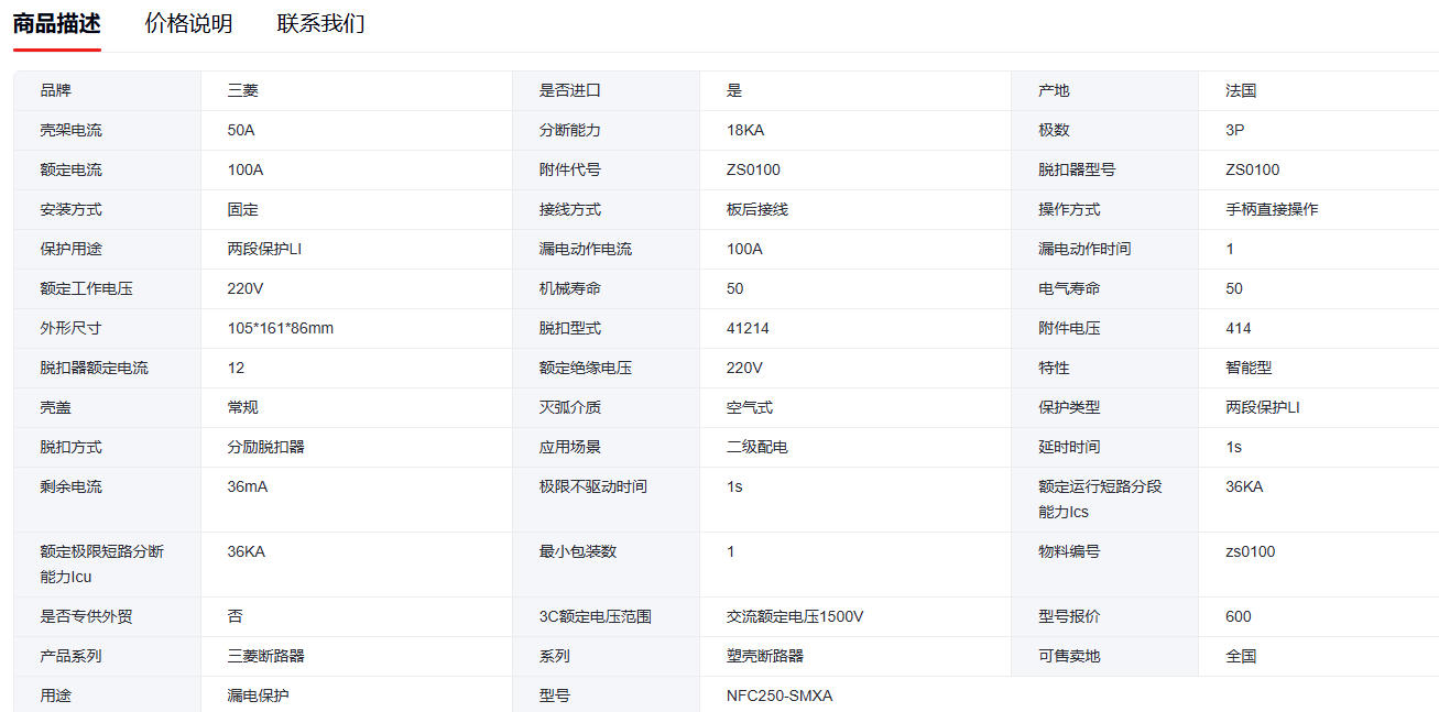 三菱塑壳断路器NFC250-SMXA 250A 200A 175A空气开关 1台