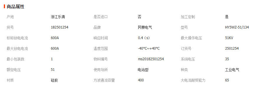 35kv避雷器HY5WZ-51/134线路电站型高压氧化锌避雷器35-40.5K定制 1只