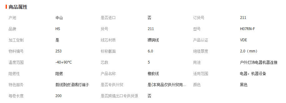 供应欧规VDE认证 H07RN-F 5G6.0平方厂家现货5芯6平方橡套电缆线 8米