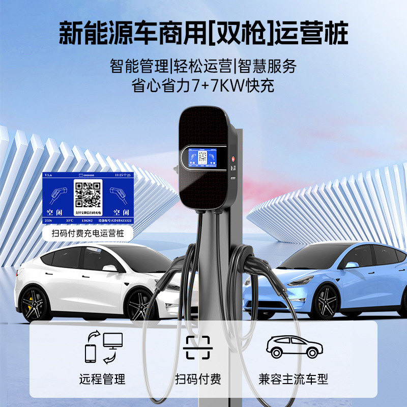 双枪充电桩 14KW商用运营扫码付款新能源电动汽车充电站32A7kw快 2套