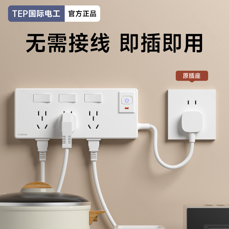 TEP国际电工转换插座一转多墙壁电源带线拓展排插三位21孔带开关 1个