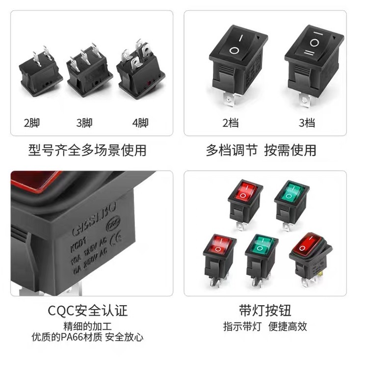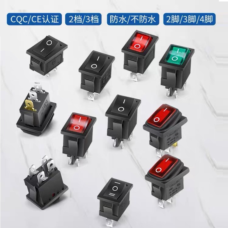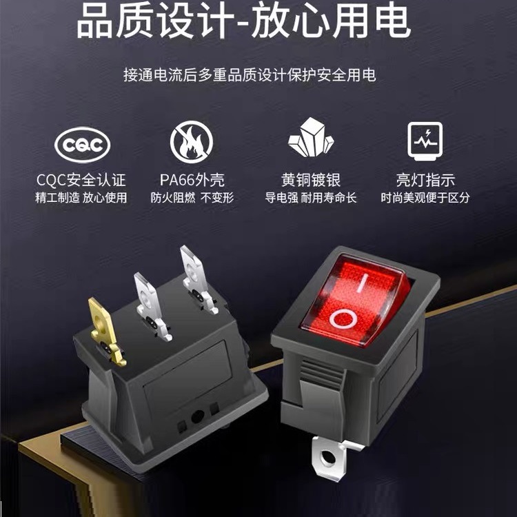 电源开关防水KCD1翘板开关4脚带蓝灯电热锅开关船型开关二脚二挡