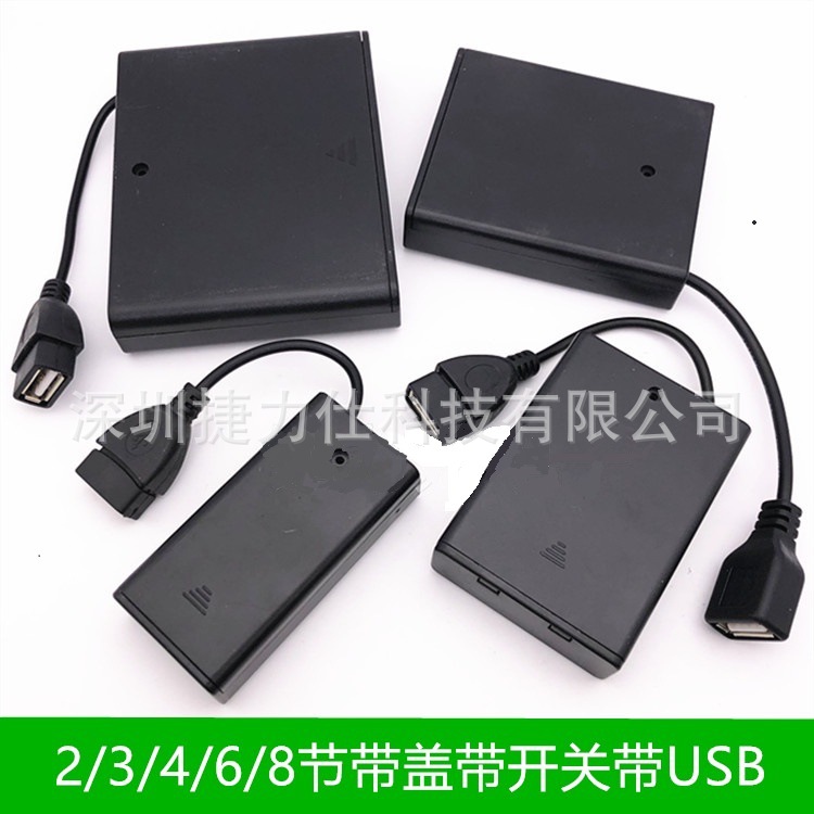 5号AAA7号电池盒2/3/4/6/8节带盖开关USB母头电源接口4.5V连接器