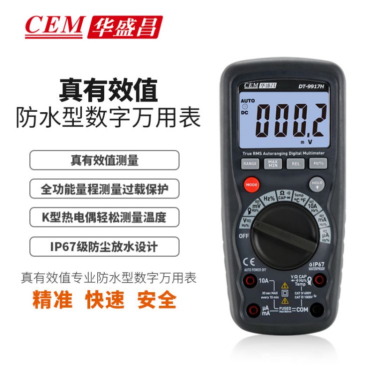 华盛昌CEM数字万用表DT-9917H 自动量程电流表万能表安全万用 表