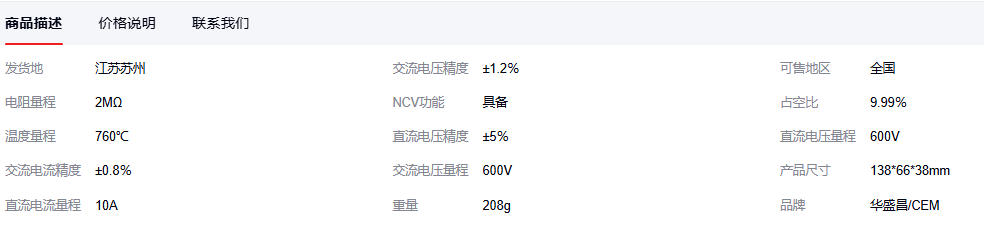 华盛昌DT-916N 工业高精度电流表便携小巧万能表电工表过载保护