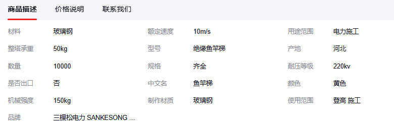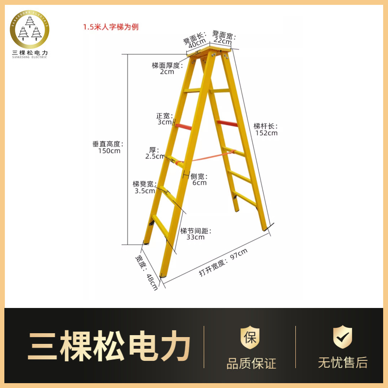 玻璃钢绝缘人字梯sks-3m三棵松电力鱼竿梯3米防护