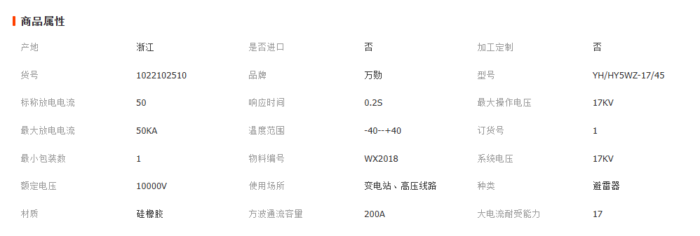万勋批发10kv高压避雷器 YH/HY5WZ-17/45复合金属氧化锌避雷