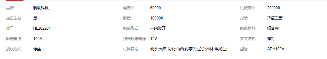 供应电池包用ADH100A直流接触器 24Vdc高压直流继电器 航联科技