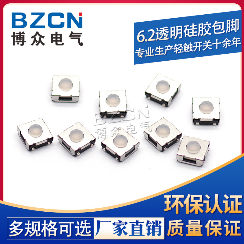 博众|6.2*6.2*2.5-5.0轻触开关透明色硅胶包脚环保耐高温