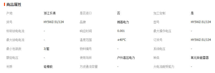 朗高电力 厂家直销 HY5WZ-51/134 复合氧化锌避雷 器量大从优