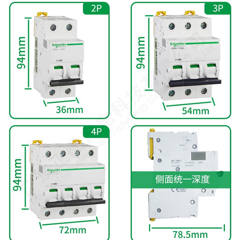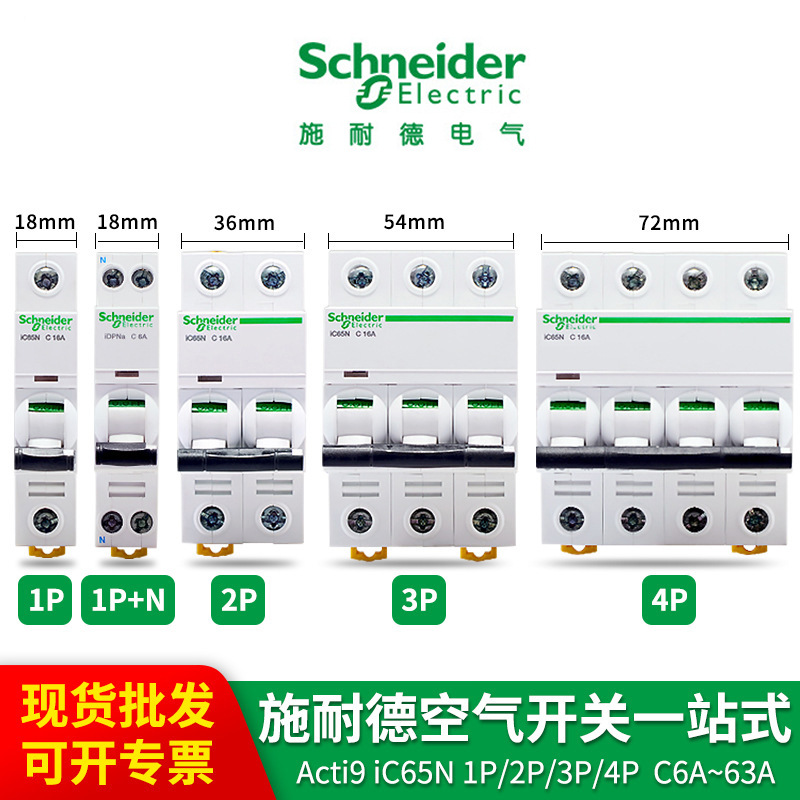 施耐断路器A9空开ic65n小型1P2P4P三相单相空气开关电闸自动断电