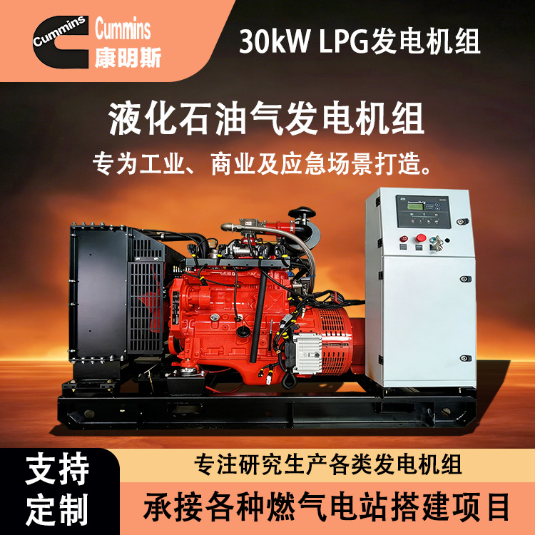 30kW康明斯LPG液化石油气发电机组天然气沼气燃气发电 机小型家用