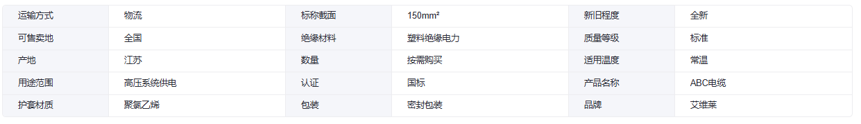 阻燃工程用 架空集束电缆 电力传输好 支持定做 艾维莱