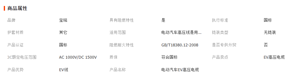 国标新能源汽车120mm²高压电缆柔软无氧铜电动汽车EV非屏蔽电缆