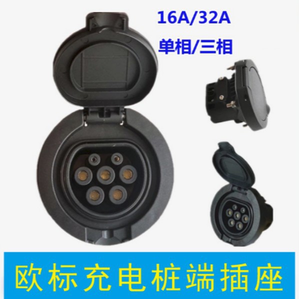 新能源欧标Type2交流无线桩端充电插座IEC62196单相三相桩端插座