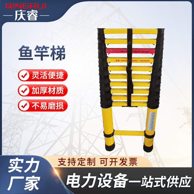 便携式鱼竿梯 鱼竿伸缩梯子 绝缘梯玻璃钢电工施工单直鱼竿梯