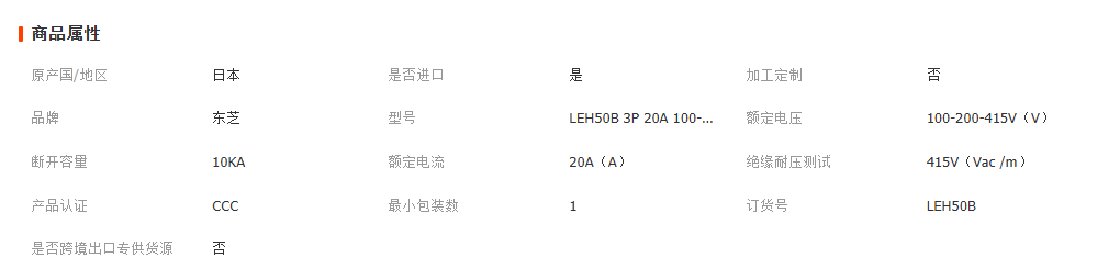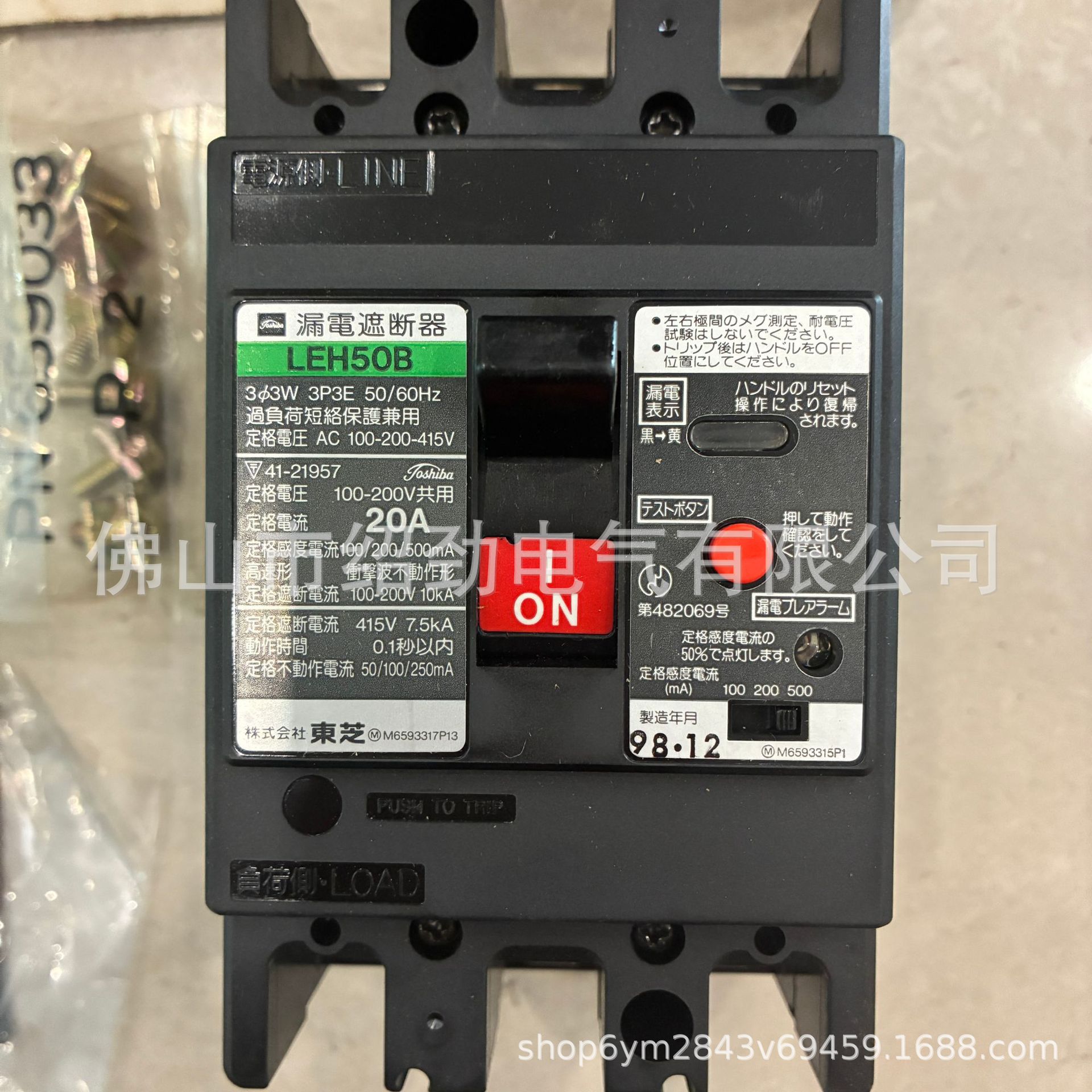 日本东芝Toshiba漏电遮断器LEH50B 3P 100-200-415V漏电 3P 20A