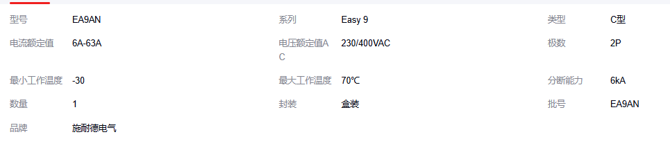 施耐德电气 微型断路器 2P EA9ANC6/C10/C16/C20/C25/C32/C40/C50