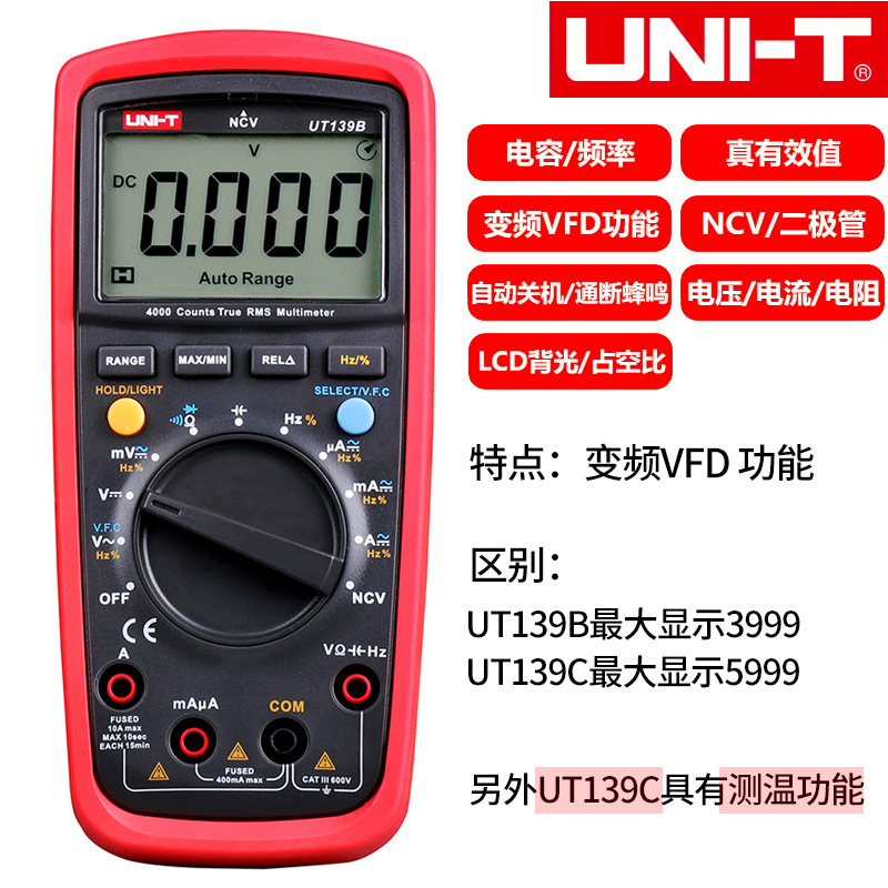 优利德(UNI-T)UT139C数字万用表真有效值多功能防烧防误测600V