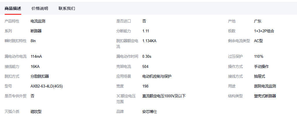 安芯博仕医院电流监测断路器AXB2-63-4LD(4GS)