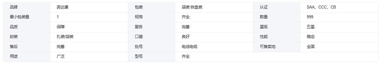 奔达康 电线电缆 抗应力 高绝缘 易成型 一站式供应省心