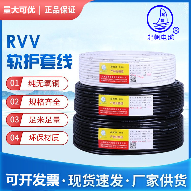 起帆RVV2x1护套软线3456芯信号线0.3/0.5/0.75/1.5/2.5平方电源线