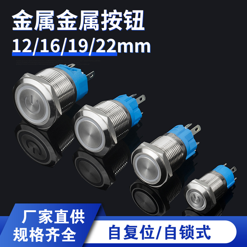 12/16/19/22MM金属按钮开关自复位自锁圆形带灯LED 电源启动按键