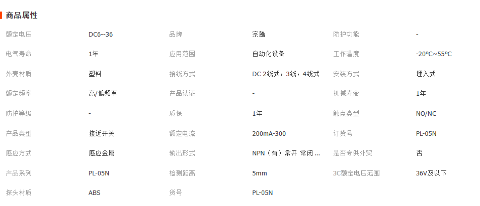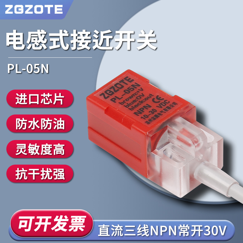 电感式防水PL-05N方形直流三线NPN常开金属限位感应器24V接近开关