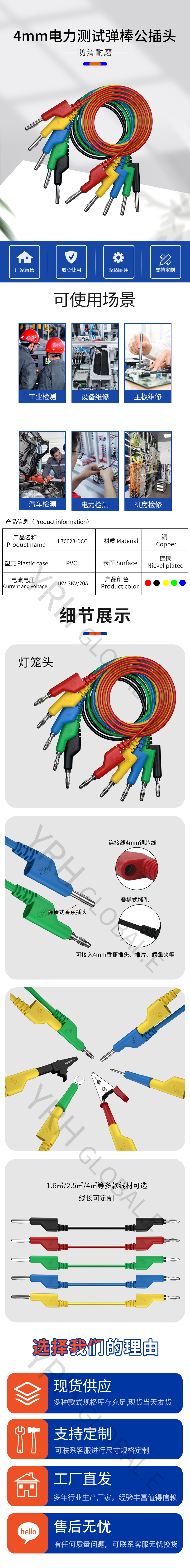 4mm电力测试弹棒公插头