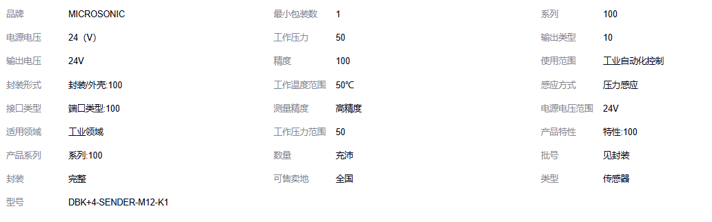 MICROSONIC DBK+4-SENDER-M12-K1 高精度传感器