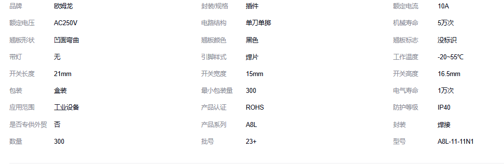 欧姆龙代理商 A8L-11-11N1 高容量二档电源开关防尘龙船型开关