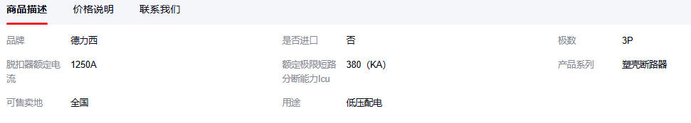 德力西塑壳断路器 DZ20Y 63A~630A 三相3P空气开关塑壳式断路器