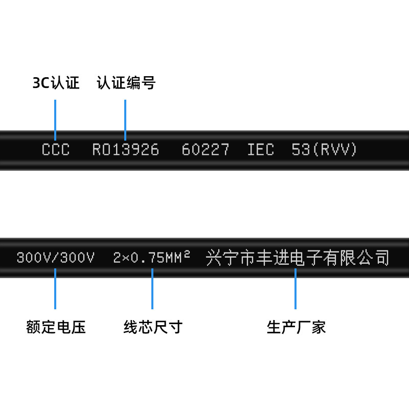 批发国标rvvb二芯护套线0.5 0.75 1平方铜芯扁形电源线家用电线