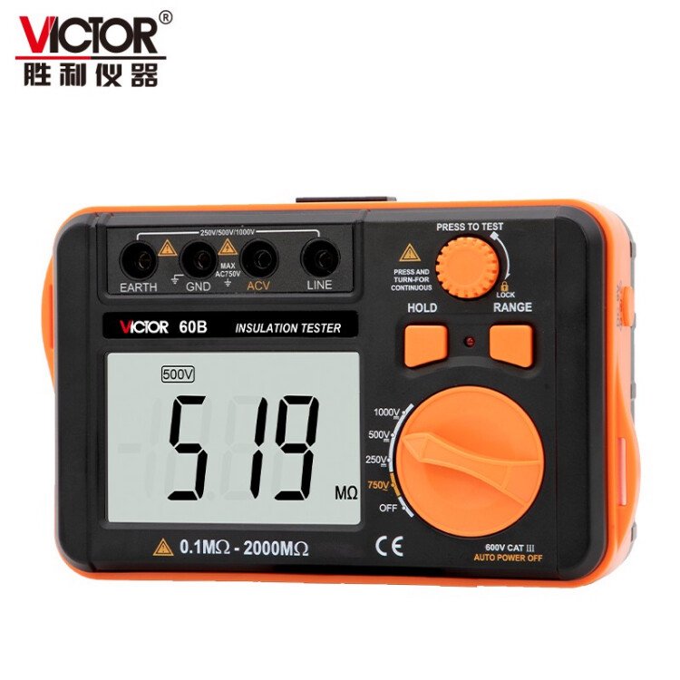 胜利仪器(VICTOR)VC60B数字兆欧表绝缘电阻测试仪250V/500V/1000V数字摇表