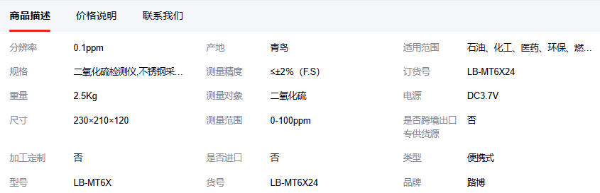 泵吸式二氧化硫气体检测仪 便携式SO2气 体浓度报警器