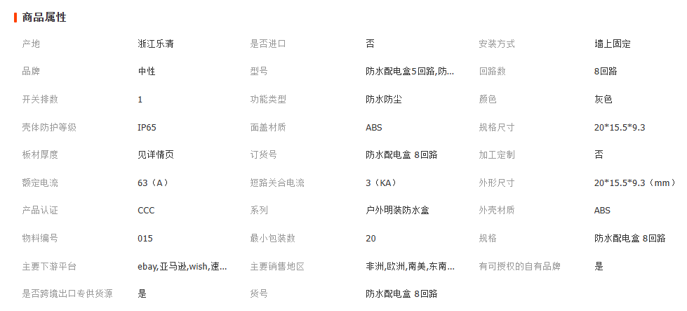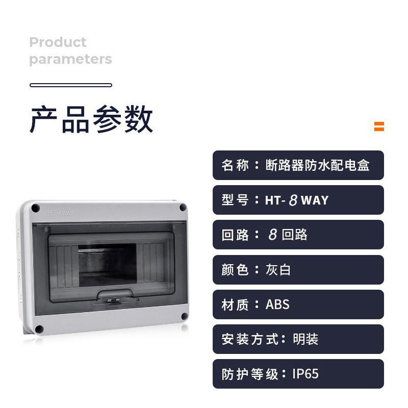 防水IP65明装断路器配电盒8回路ABS户外塑料配电箱内置铜接线端子