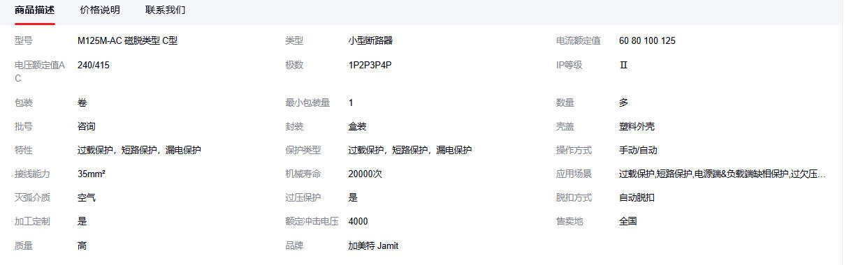 加美特小型断路器过载保护短路保护1P2P3P4P60A125A