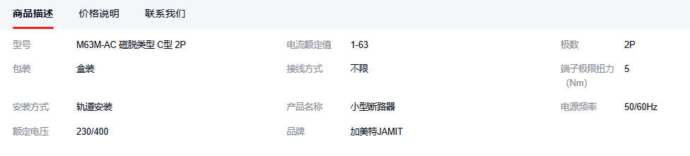 加美特JAMIT 小型断路器 家庭用空开 提供过载保护以及短路保护 2P