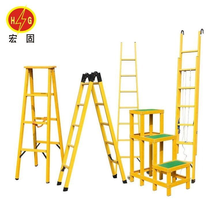 宏固电气轻型玻璃钢爬梯 电工绝缘折叠梯 6米玻璃钢升降梯