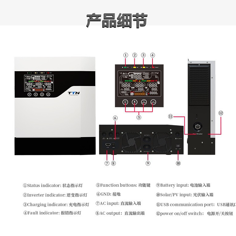 MPPT太阳能逆控一体机光伏家用离网混合高频逆变器12KW