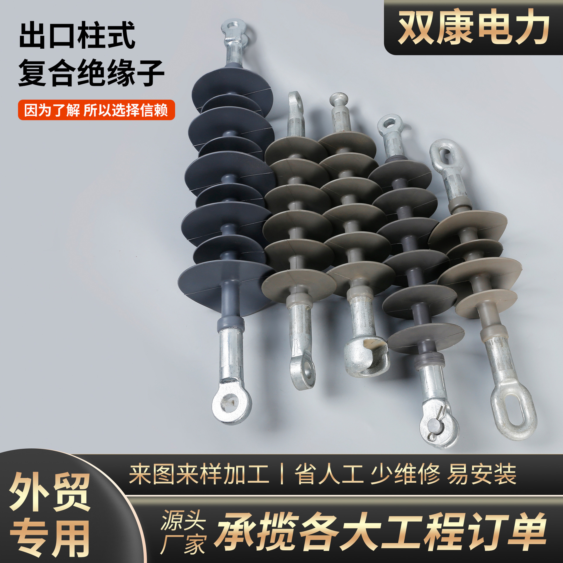 外贸专供复合单双耳绝缘子棒形悬式绝缘子硅橡胶复合绝缘子