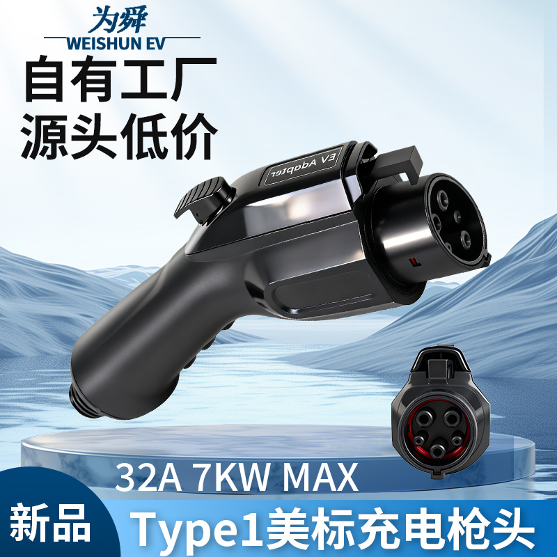 美标J1772车端充电枪头新能源电动汽车五孔充电插头 32A单相