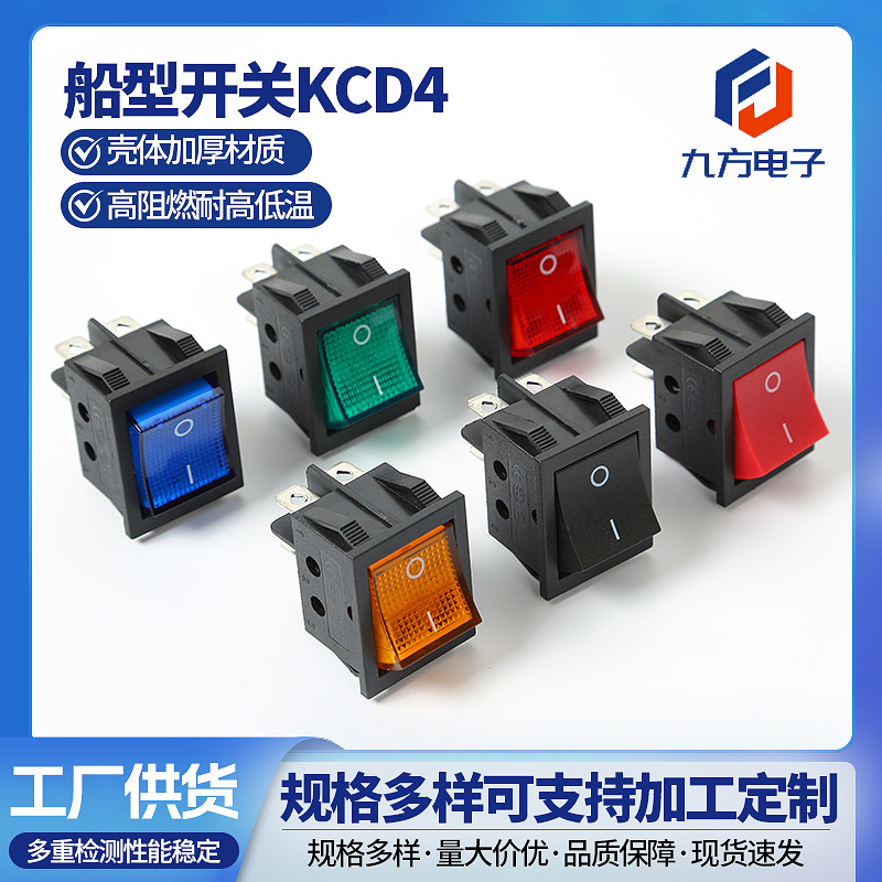 KCD4两档四脚船型开关多规格带灯翘板开关饮水机按键电源开关批发