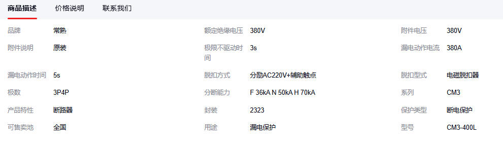 常 熟开关塑壳断路器 CM3-400L/级数 400ACM3-630L/400A框架空气开关