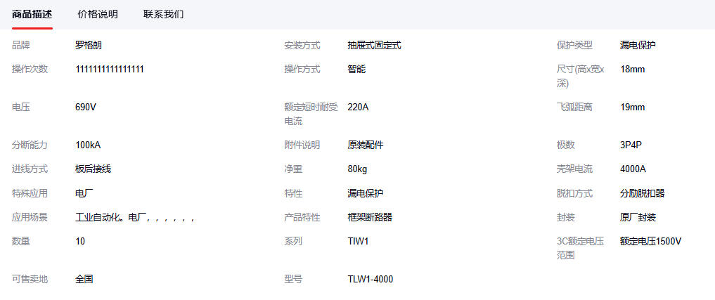 罗格朗智能型TLW1-4000/3 框架断路器3P抽屉式4000A 固定式开关